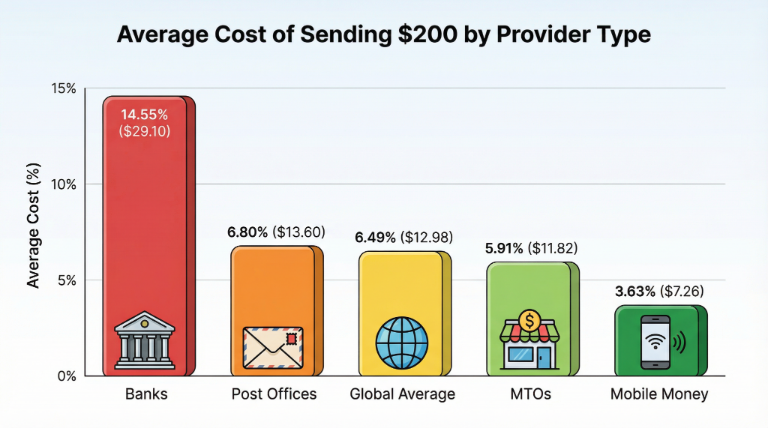 Source: World Bank Remittance Prices Worldwide (Quarterly Report Q1 2025 / Q4 2024 data).